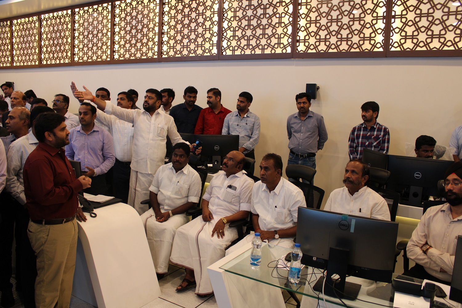 Thiru S.P. Velumani, Hon’ble Minister for Municipal Administration and Rural Development, Thiru D. Jayakumar ,Hon'ble Minister for Fisheries and Personnel and Administrative Reforms, Thiru P. Benjamin, Minister for Rural Industries, Thiru Harmander Singh IAS MAWS, Secretary, GCC Commissioner Thiru G. Prakash IAS and officials inspecting the Command and Control Centre work in progress at Ripon Building campus on 24th Dec 2019